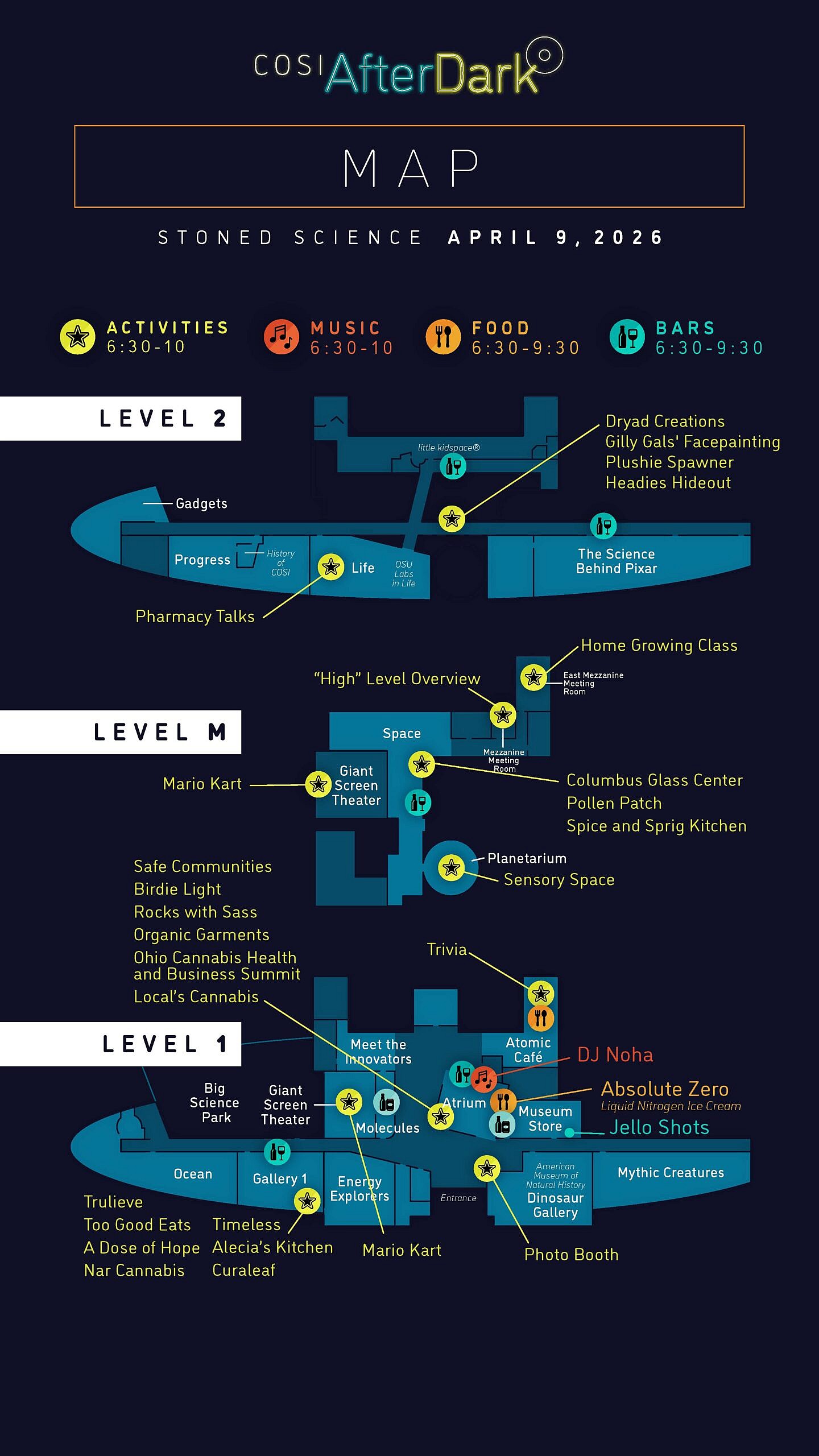 Cannabis and cannabis products are not permitted anywhere on COSI property or grounds. Cannabis products will not be sold or distributed during this event.